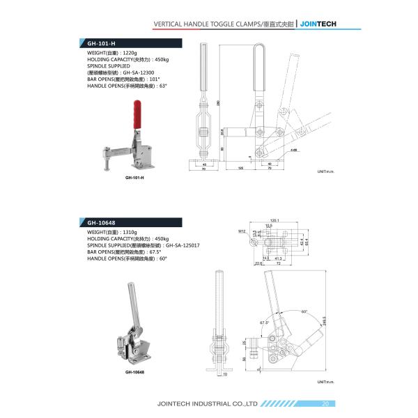 1220g Weight 900lbs Big Duty Vertical Handle Toggle Clamp Images |